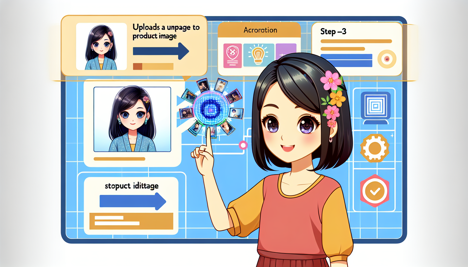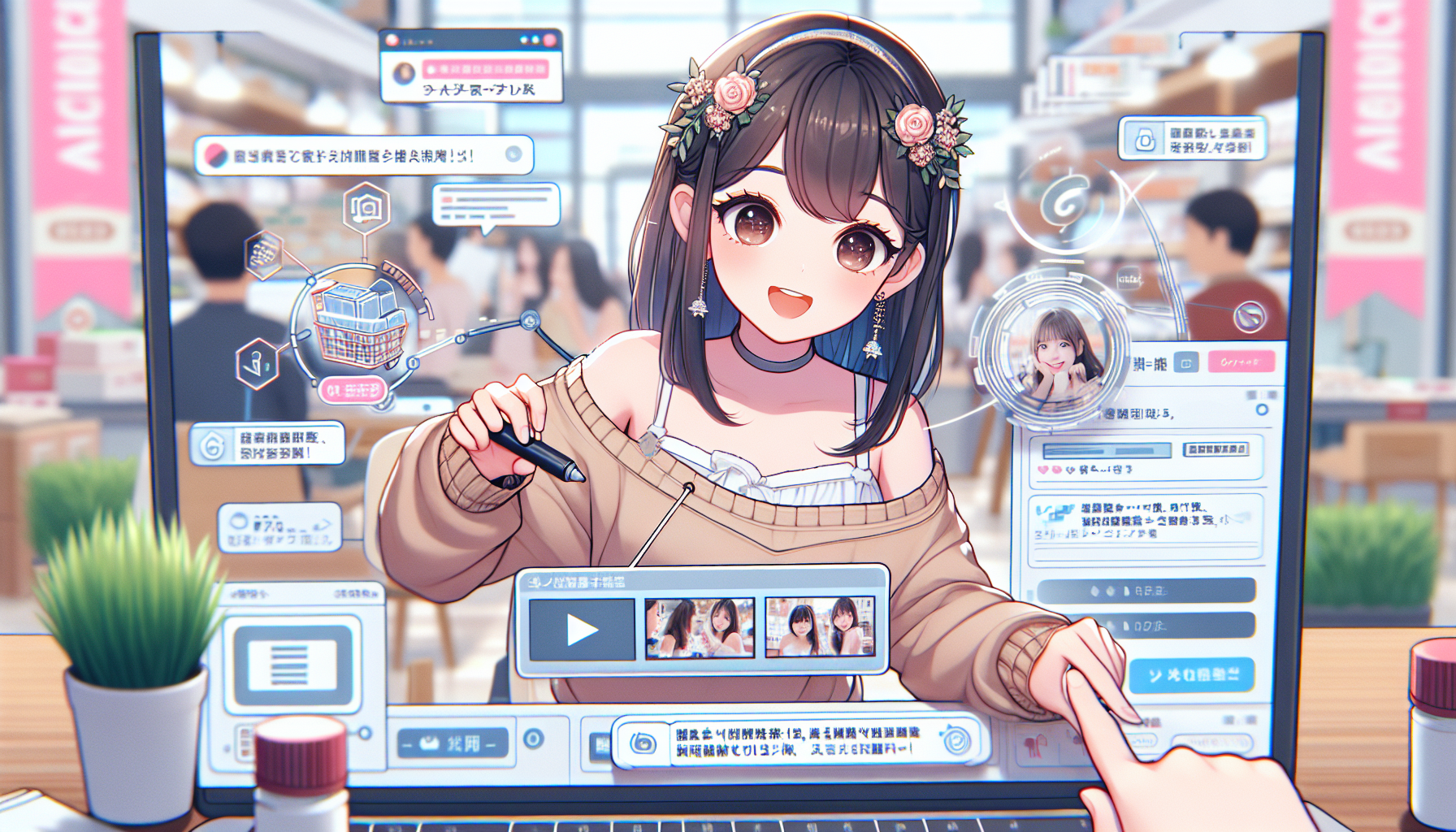 美少女AIが商品の特徴を分かりやすく紹介します。商品+美少女の組み合わせで、視覚的にインパクトを与えます。