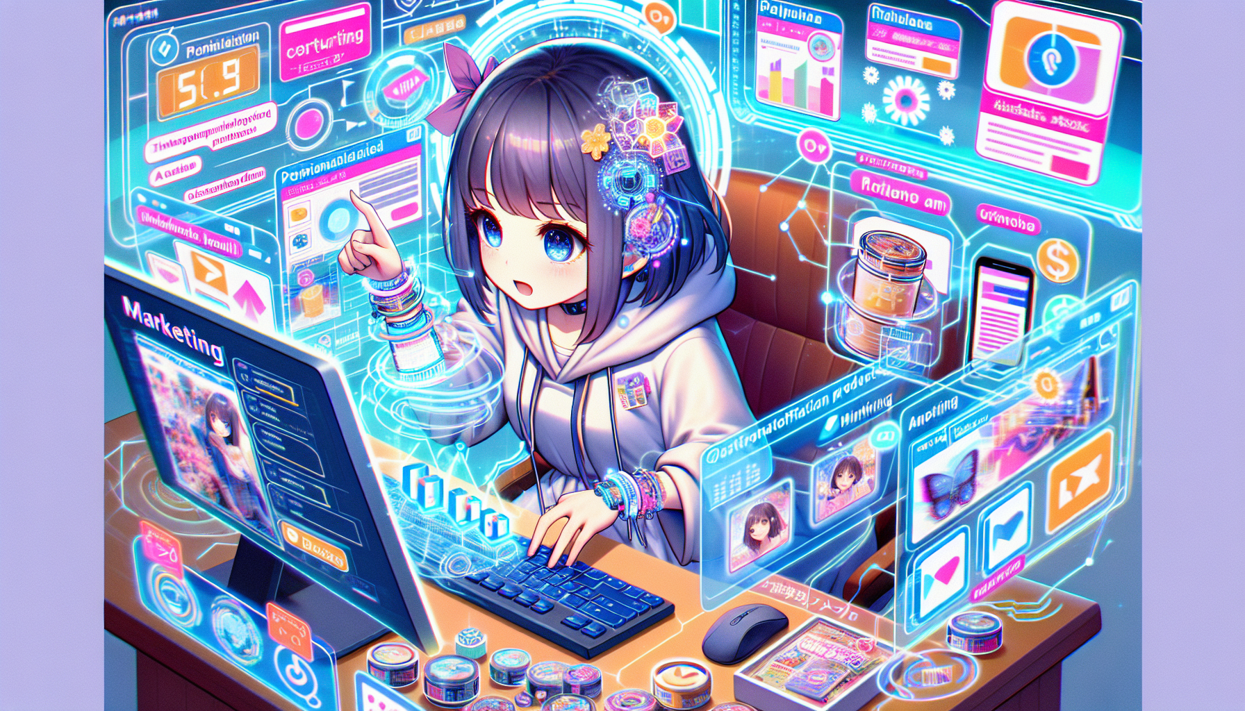 美少女AIアバターが主役の世界観で、視覚的に新しい商品体験をお届けします。あなたの商品もこの魅力的なビジュアルで顧客にアピールできます。