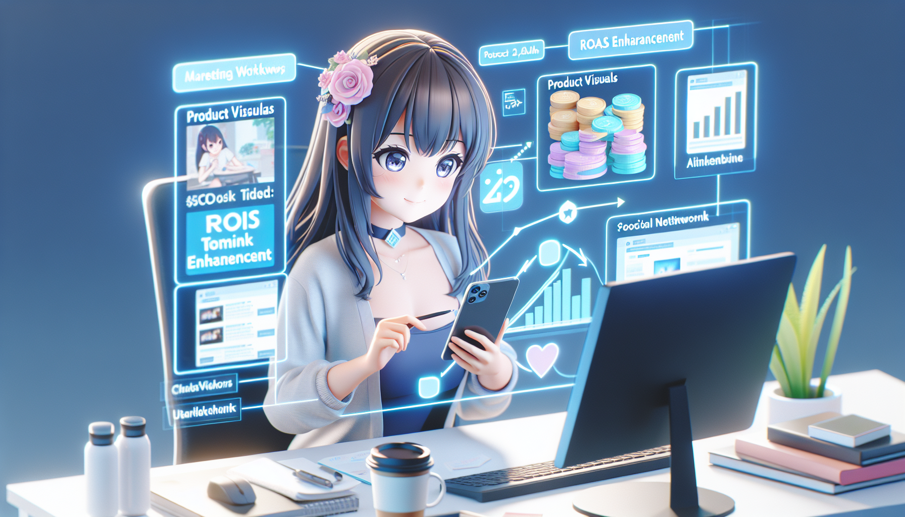 美少女AIアバターが商品を使用する場面をイメージさせ、購入意欲を刺激します。
