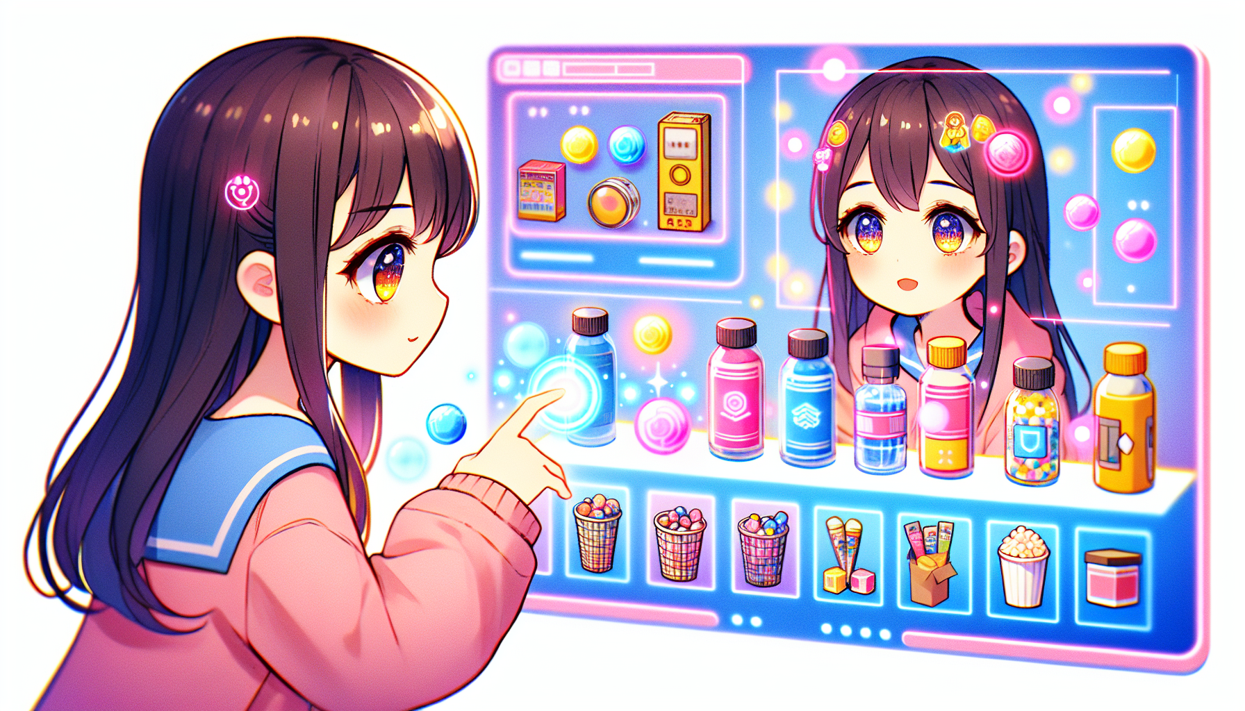 商品を使用する様子を美少女キャラクターが再現。商品の使い方や効果を視覚的に伝えます。