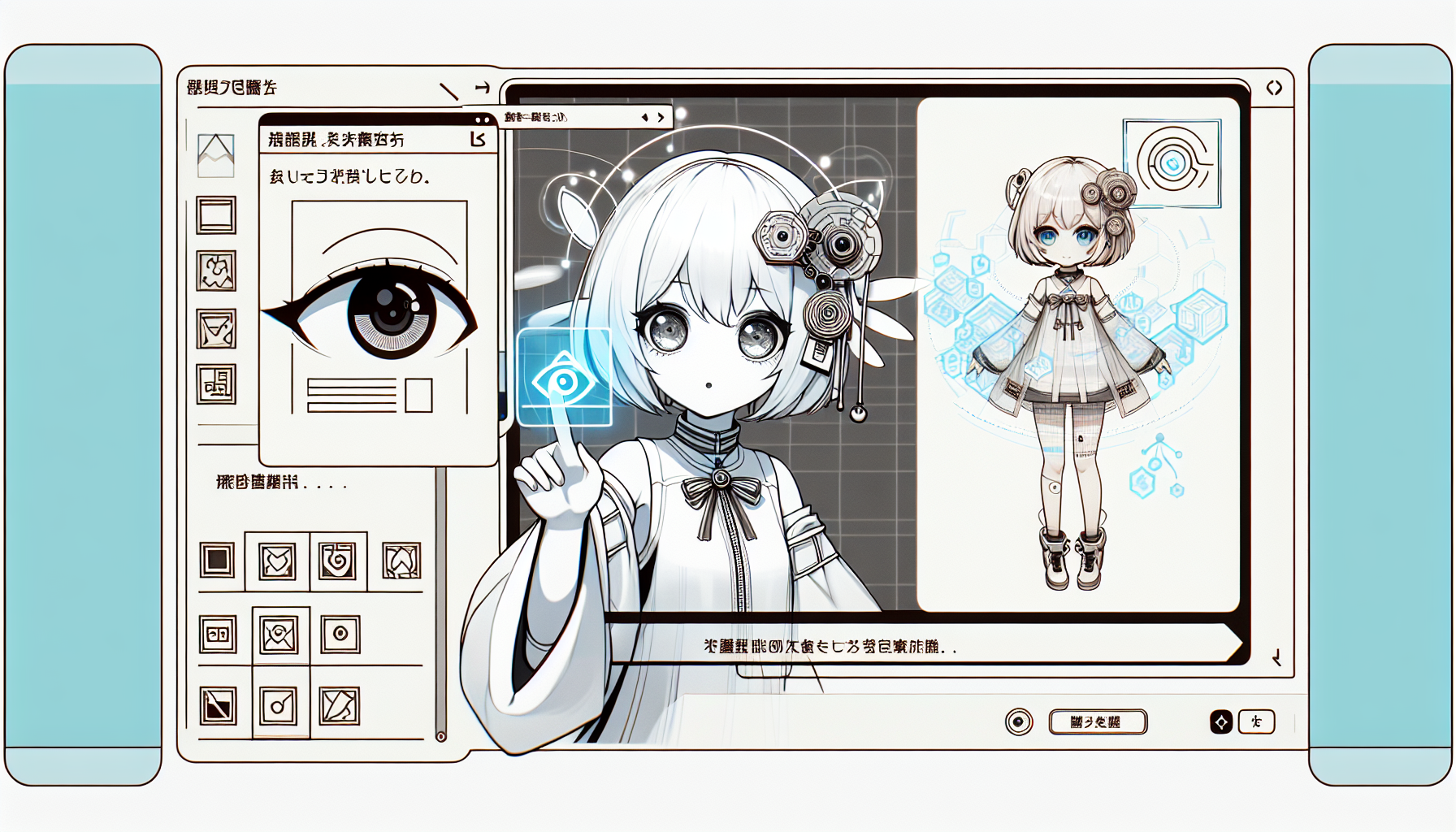 商品の細部まで見せるクローズアップショット。美少女キャラクターの説明と共に、商品の良さを伝えます。
